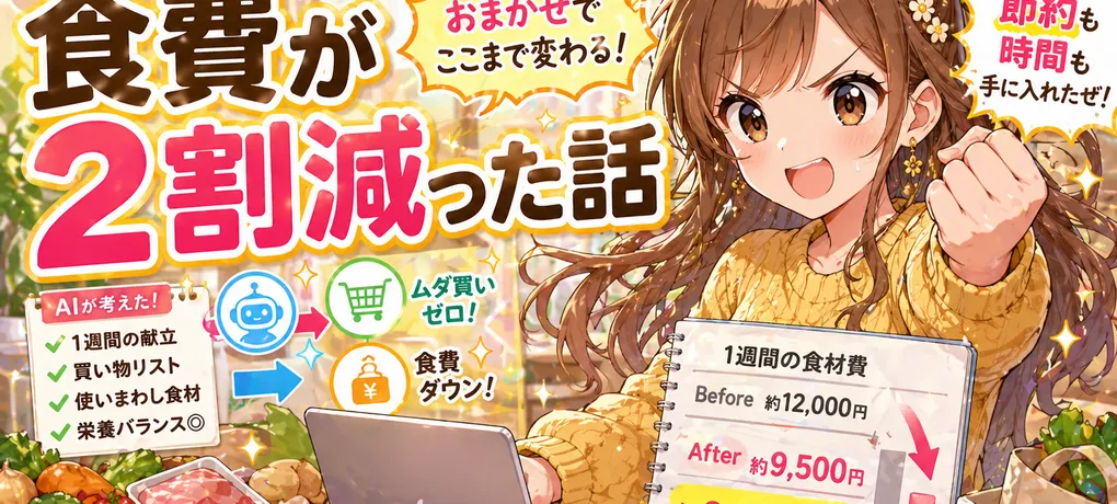 「節約しなきゃ」って思って家計簿をつけるより、AIに献立を頼む方がよっぽど楽に食費が下がったっていうのが正直な感想です。